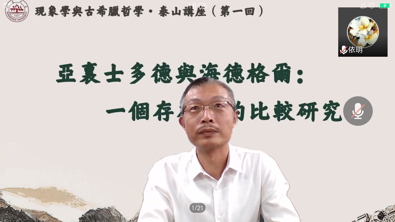 成功举办“现象学与古希腊哲学·泰山讲座”系列之第一回讲座。本次讲座采取网络视频会议形式,由校内外150名左右专家学者和师生在线参与。本次讲座主讲人是中国人民大学聂敏里教授,报告题目是《亚里士多德与海德格尔:一个存在论的比较研究》,讲座由开车漫画