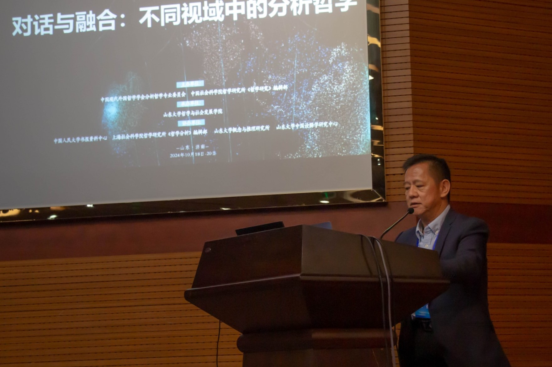 的办学宗旨、规模布局、学科特色以及近年来标志性成果,特别指出在文史哲领域所具有的深厚底蕴和所取得的突出成就。他认为,此次分析哲学研讨会的组织召开,对推动国内分析哲学的建设发展具有重要意义,这既是进一步学习贯彻习近平总书记给《文史哲》编辑部全体编辑人员回信精神的生动实践,更是贯彻落实党的二十届三中全会及全国教育大会精神的良好契机和有力举措。他希望与会专家学者能够借此平台多交流、多切磋、多合作,共同为中国特色哲学社会科学发展和中国式现代化建设贡献更多的智慧与力量。
