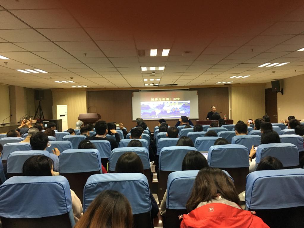 首先,郭湛教授指出,在人类哲学发展史上,存在着某种规律性的现象,即创造与阐释的相互作用和转换。创造与阐释的这种关系类似于音乐中的变奏曲。郭湛教授强调,近40年来,中国哲学发展中的这种变奏的历程、现状和亟待解决的问题,是当前中国哲学界不能不关注的问题。郭湛教授认为,西方哲学与马克思主义哲学都经历着“创造——阐释——创造”的变奏。郭湛教授重点阐述了近40年来,在马克思主义哲学中国化和中国马克思主义哲学发展进程中“理论与实践”“存在与规律”“主体与活动”“生产与发展”“文明与交往”的创新发展。接着,郭湛教授分析了当前中国哲学变奏的现实特征,他指出,在当今中国,思想理论创新已成为中国学术研究的主旋律。然而,学术阐释仍然是当前中国哲学研究的主导方式,似乎还没有自觉地进入创造主导的变奏。郭湛教授从个人与社会等多方面分析了产生这一问题的原因。最后,郭湛教授就如何扭转“阐释驱逐创造”的偏向提出建议,他指出,应当给予思想创造更高的评价,并由个人主体内在创造动机入手,逐渐使整个共同体真正重视思想创造,形成创造与反馈的良性循环,从根本上将“阐释驱逐创造”的机制转换为“阐释创造并重”的机制。讲座最后,郭湛教授和与会师生就学术创新的标准、学术与政治、解释世界与改造世界等问题进行了深入的讨论。