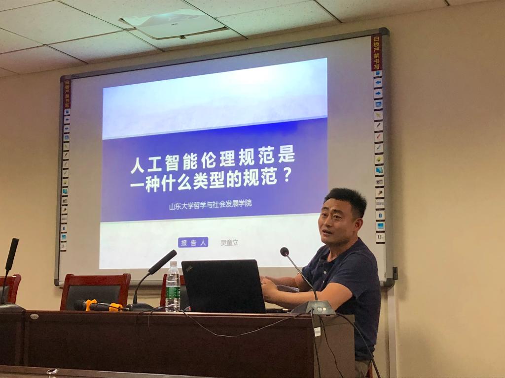 第28期思想者论坛在知新楼A1408室举行,哲学系吴童立副教授受邀做了题为“人工智能伦理规范是一种什么类型的规范”的专题报告。
