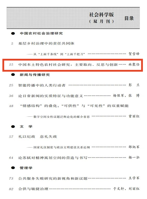 林聚任教授在《西北师大学报(社会科学版)》2024年第4期上发表了题为《中国本土特色农村社会研究:主要取向、反思与创新》的高质量论文。