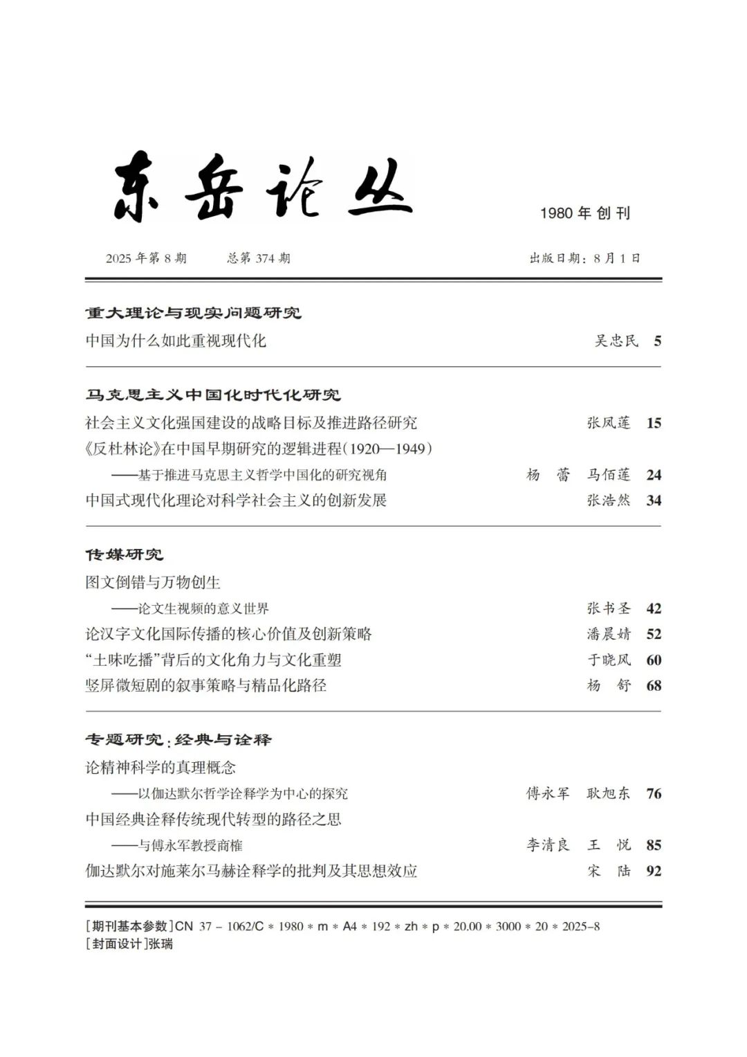 《东岳论丛》创刊于1980年,是山东社会科学院主办、国内外公开发行的大型人文社会科学综合性学术理论期刊。主要栏目有“哲学研究”“经济学研究”“文学研究”“社会学研究”“历史学研究”“儒学研究”。本刊立足于当代中国文化学术研究的最前沿,追踪最新的学术研究动态,关注当代中国和山东社会中的重大理论问题及社会现实中的难点热点问题,荣获华东地区最佳期刊、山东省十佳期刊。