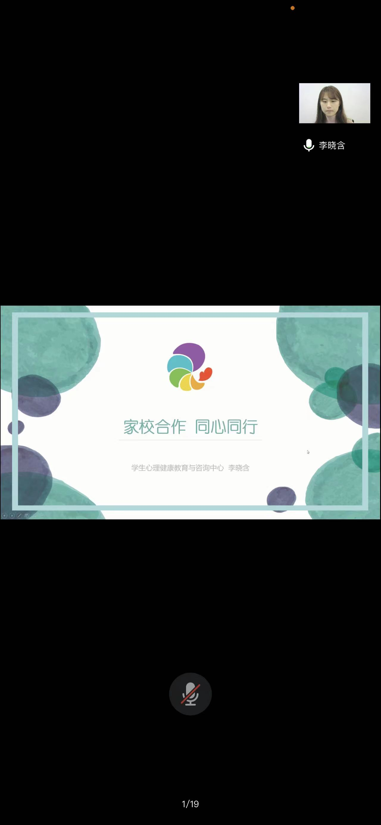 心理咨询中心李晓含老师主讲,学院党委副书记李永卫、全体辅导员和2019级、2020级全体学生家长参加了会议。