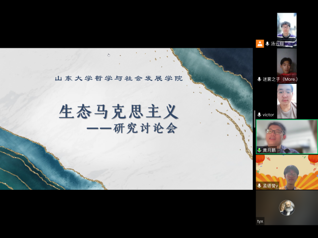 发挥专业优势、融合多学科视角,于4月3日晚举办生态马克思主义研讨会。研讨会着眼生态文明的视角,着眼于环境战略的发展大局,期待通过跨专业合作交流推动生态实践有序开展。研讨会于腾讯会议线上举行,邀请哲学系单提平教授出席,由汤云翔主持。
