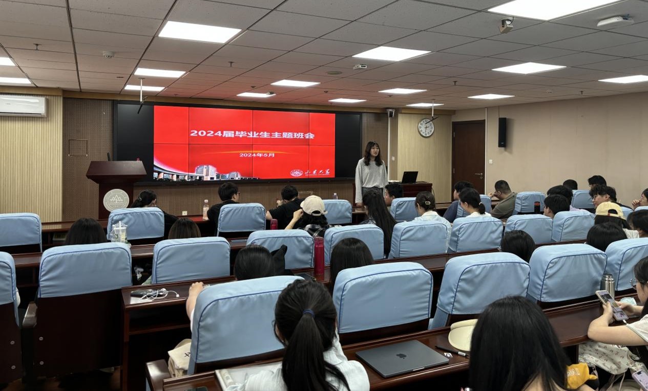 开展2024届本科毕业生主题班会。学院团委书记、2020级本科生辅导员班梦姣主持会议,2020级全体本科生参加会议。