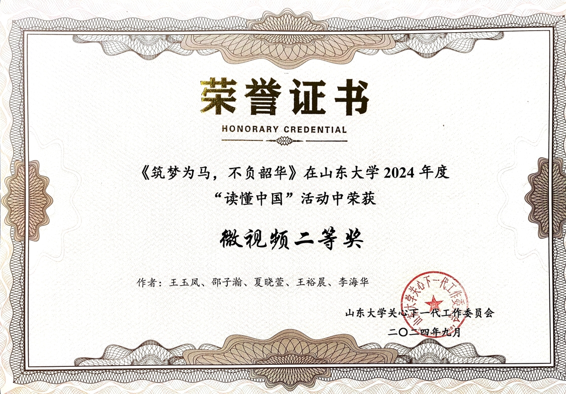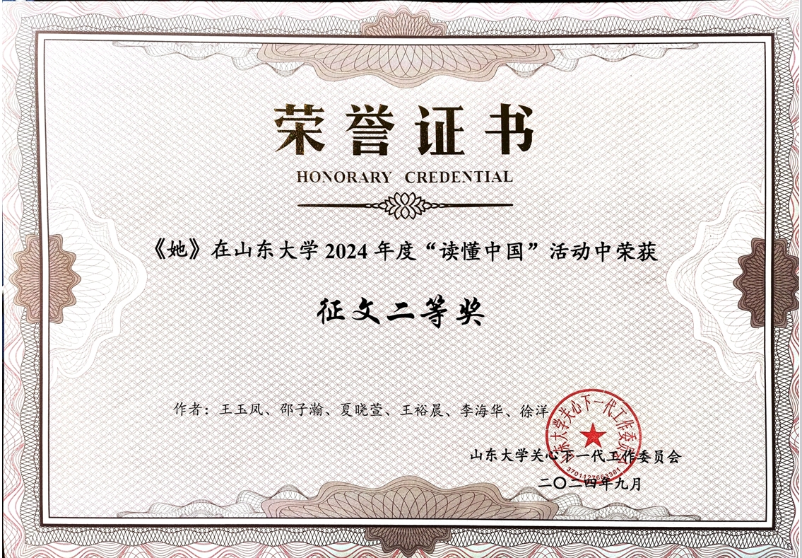 暑期社会实践校级优秀团队;2021 级哲学强基班团支部,荣获共青团山东省委 “百万大学生进社区” 社会实践活动表扬通报;“泉”新“泉”忆赴济南市关于新旧动能转换背景下探寻老城工业记忆项目实践团在《中国研究生》发表图文通讯稿件《工业遗产的历史探寻与现代转译》。