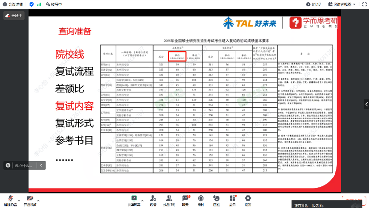 2024年招收硕士研究生复试考试录取办法为例,为同学们详细讲解了考研复试与调剂的实践技巧,展示了复试常见考察形式及内容,以及调剂的具体方法等。同时,老师也提醒同学们要综合考虑学校招生政策、分数线及未来职业规划,有针对性地进行备考。