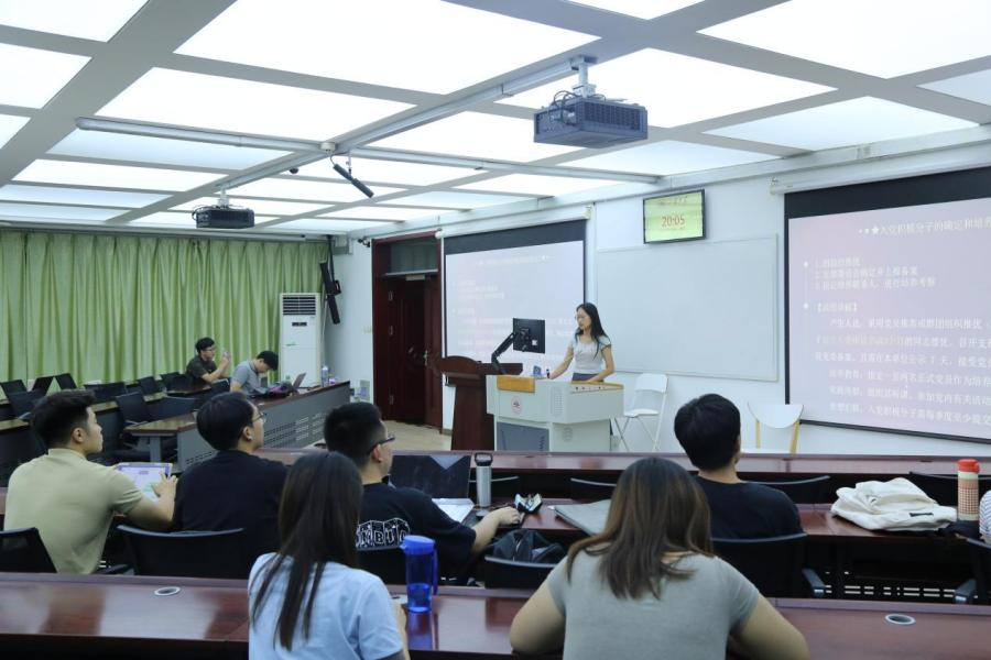 在信息楼401b开展2025级研究生新生入学教育第七课即党员集体学习。学院研究生党员常张杰、张琳艳主讲,学院2025级全体研究生党员参加。