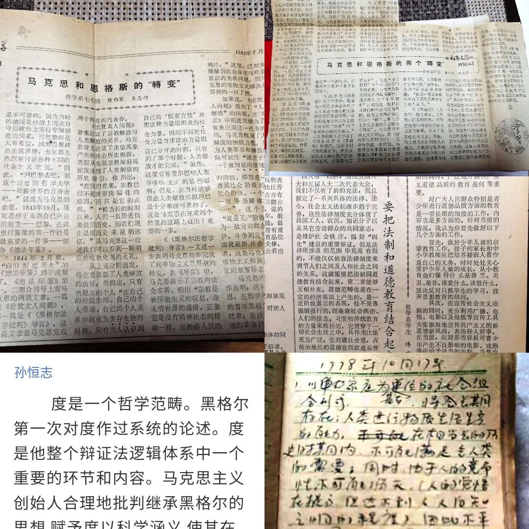 记得当年中文系77级贺立华同学主编了一本杂志《沃野》,在学生圈颇有影响,方宏建同学是唯一哲学编委,哲学系77级不少同学在上边发表过文章。据袁玉骝同学回忆,哲学系77级也曾办过杂志,取名《纵横谈》,共出版四、五期,刻钢版铅字印刷,在这本杂志中袁玉骝同学曾发表《欢呼大包干来的更猛烈吧!》一文。可惜这本班级唯一杂志已不见踪影,如现在尚有同学保存,该是多么有价值的班级文物。
