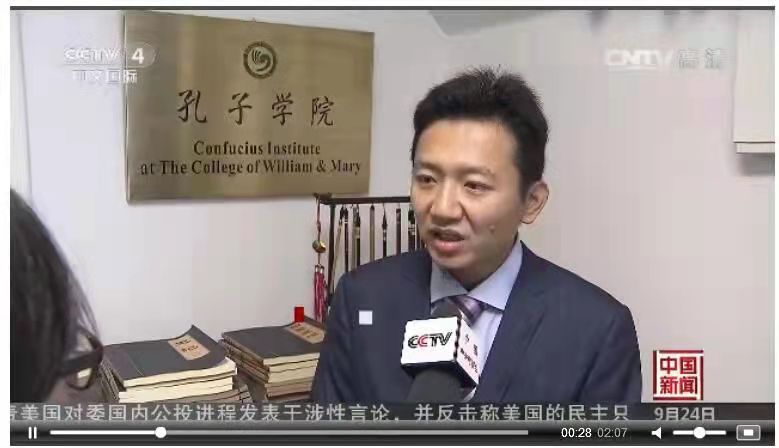 2016年在美国威廉玛丽孔子学院接受央视采访
