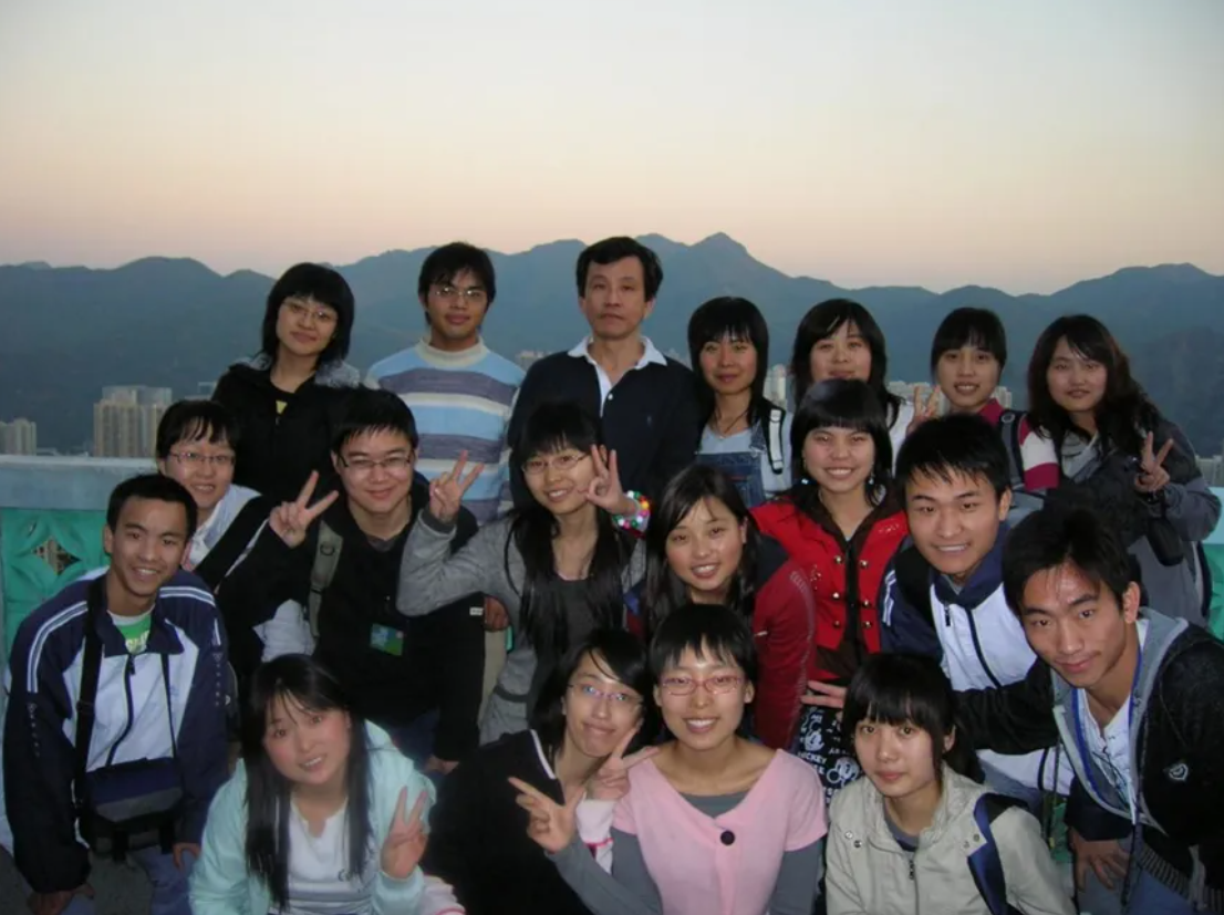 图3 2008年12月与社工班18位同学去香港访学,与开车漫画