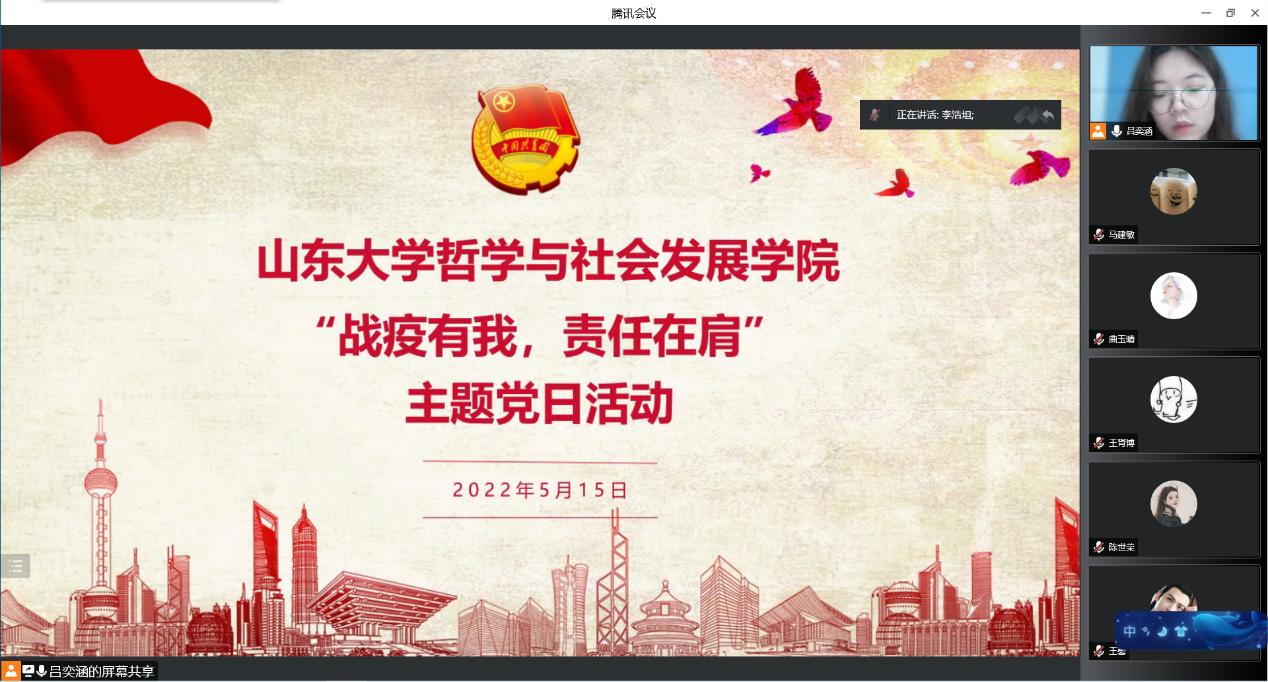 最后,班梦姣进行总结发言,回应青年党员的疑问与关切,并进一步提出希望和要求。鼓励大家主动担当作为,用青年担当书写好“抗疫时代”的青春故事,让党旗在战疫一线高高飘扬。