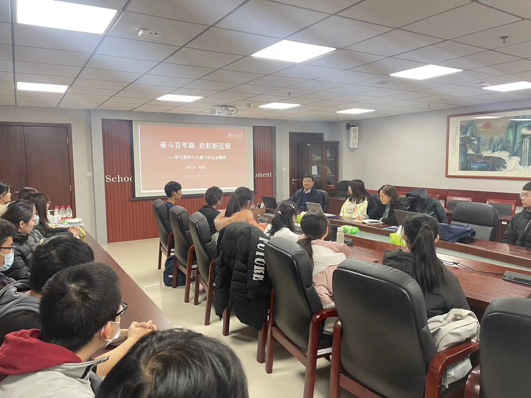 12月16日下午,校长助理邢占军为2020级社会学一班全体同学讲授党的十九届六中全会精神专题思政课,以“奋斗百年路 启航新征程”为题,为同学们系统解读了党的十九届六中全会精神。