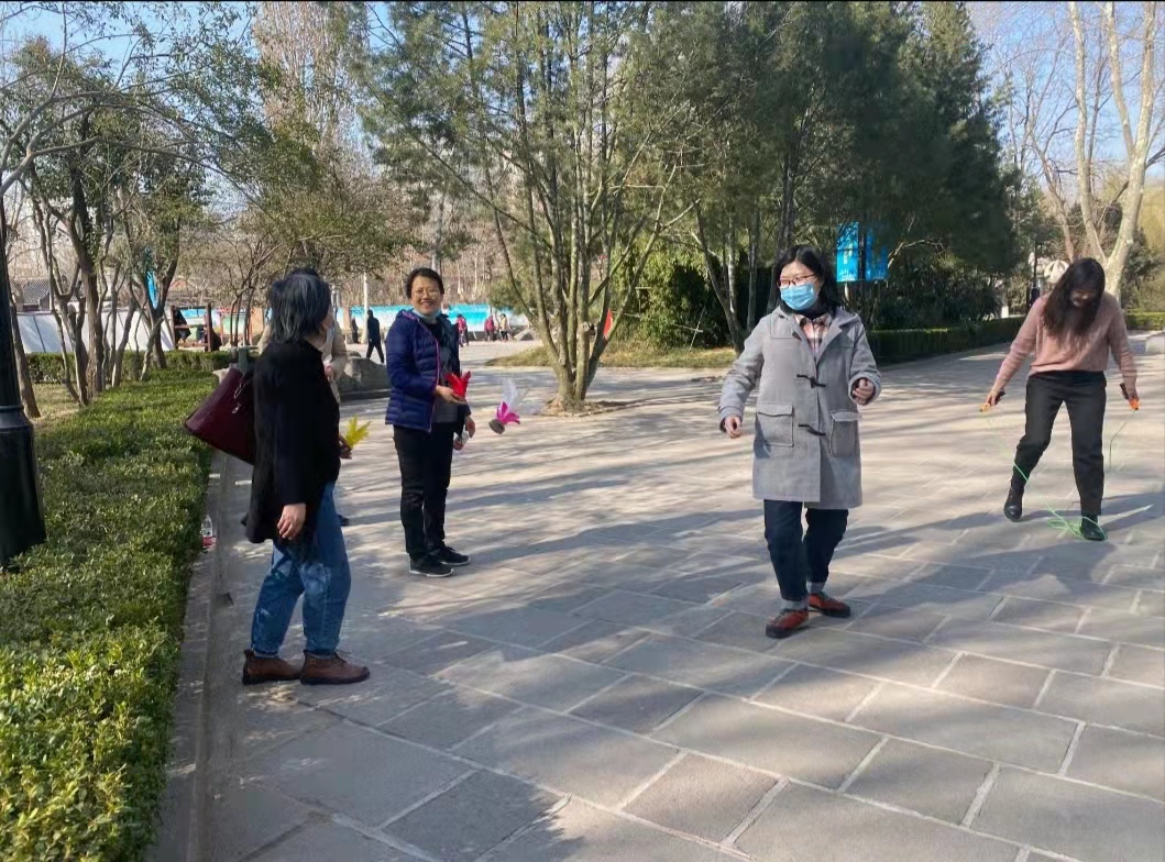 百花公园内春风拂面、暖意融融,树梢上草地上涂抹了一层淡淡的新绿,百合花迎春花等百花绽放。和煦的阳光温暖惬意,细柔的春风馨香满怀,女同胞们以健步走的方式,以健康、奋进的姿态拥抱幸福美好的生活。健步走之外还组织了扔沙包、踢毽子、跳绳等健身活动。老师们的欢声笑语在公园里飘荡,健步走活动收获颇丰达到预期效果,也充分展现了我院女工开拓进取的精神风貌。