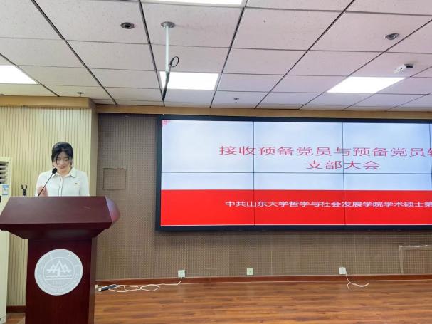 在接收新党员环节,王亚、王骐龙、孙晓芬、杨晨晨、周方晴、周伯翰、徐苑瑶、程秀丽八名党员发展对象依次汇报了自己对党的认识、入党动机、本人履历、家庭和主要社会关系情况以及需向党组织说明的问题。八名同志的入党介绍人向大会汇报了相关情况,并表明了意见。马慧君同志代表支部委员会报告了八位同志的审查情况。随后,经支部大会无记名投票表决,八名同志的赞成人数均超过应到会有表决权的正式党员的半数,同意接收他们为中共预备党员。新接收的预备党员依次上台做表态发言。