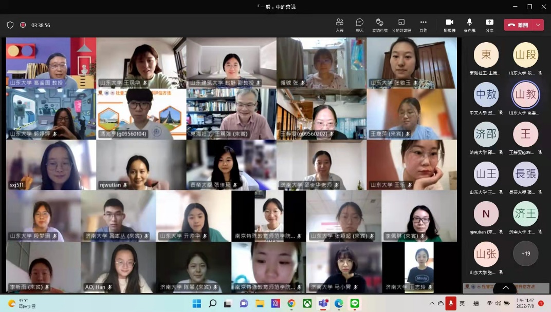 社会工作系的高鉴国教授总结发言,高教授首先表达了对于三校社会工作系十多年来相互合作与支持的认可与感谢,包括两岸三地学术会议、暑期学校和实地探访等交流合作形式。高教授表示今年线上工作坊一方面可以延续既往直接的学术交流与合作,另一方面也可以学到线上交流的经验和方式。最后简单介绍了来自中国内地的学校学生参与情况,并预祝工作坊成功举办!