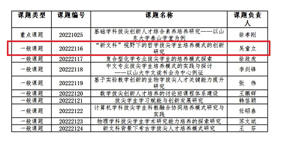 吴童立副教授所申课题《“新文科”视野下哲学拔尖学生培养模式的创新研究》位列其中。