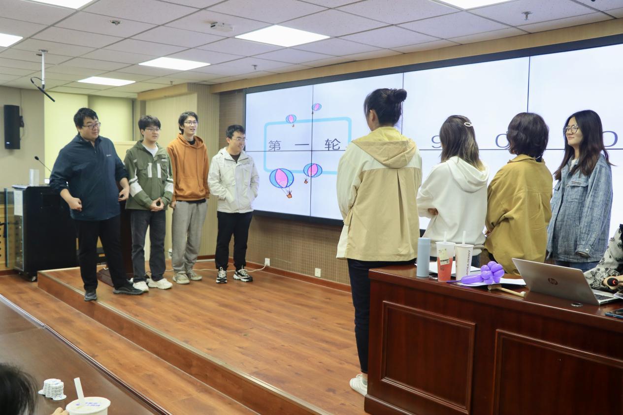 随着主持人宣布比赛正式开始,同学们迅速进入竞赛状态。“蓄势待发”环节在积分奖励之外设置了免答卡、延时卡以及换题卡等特殊技能卡。参赛者们在激烈抢答的同时也展现出来广泛的知识储备。在“听歌识曲”环节中,参赛选手仅凭10秒前奏就能迅速说出歌名并唱出歌词,引得全场喝彩,双方抢答歌曲的过程扣人心弦,紧张刺激。积分赛结束后,6组积分较高的参赛队伍顺利进入排位赛。在“你划我猜”环节中,各组队伍两名成员负责观看题目比划,另外两名队伍成员背对屏幕猜成语。在比赛过程中,队伍成员展现出来了十足的默契,往往仅凭借对方一个肢体动作就能迅速猜出成语。经过本轮环节,很多队伍凭借十足的默契实现了比分翻盘,比赛进入了白热化环节。“相辅相成”环节设置了不同类型的题目包,参赛选手队伍两两PK,互相为对方选择题目类型,在这一轮环节中参赛选手展现出丰富的知识储备。决定比赛胜负的“答题拍卖会”环节考验着参赛队伍的知识储备与游戏策略,由于拍卖的题目分值不定,整个过程比分不断变化,充满了惊喜与刺激。