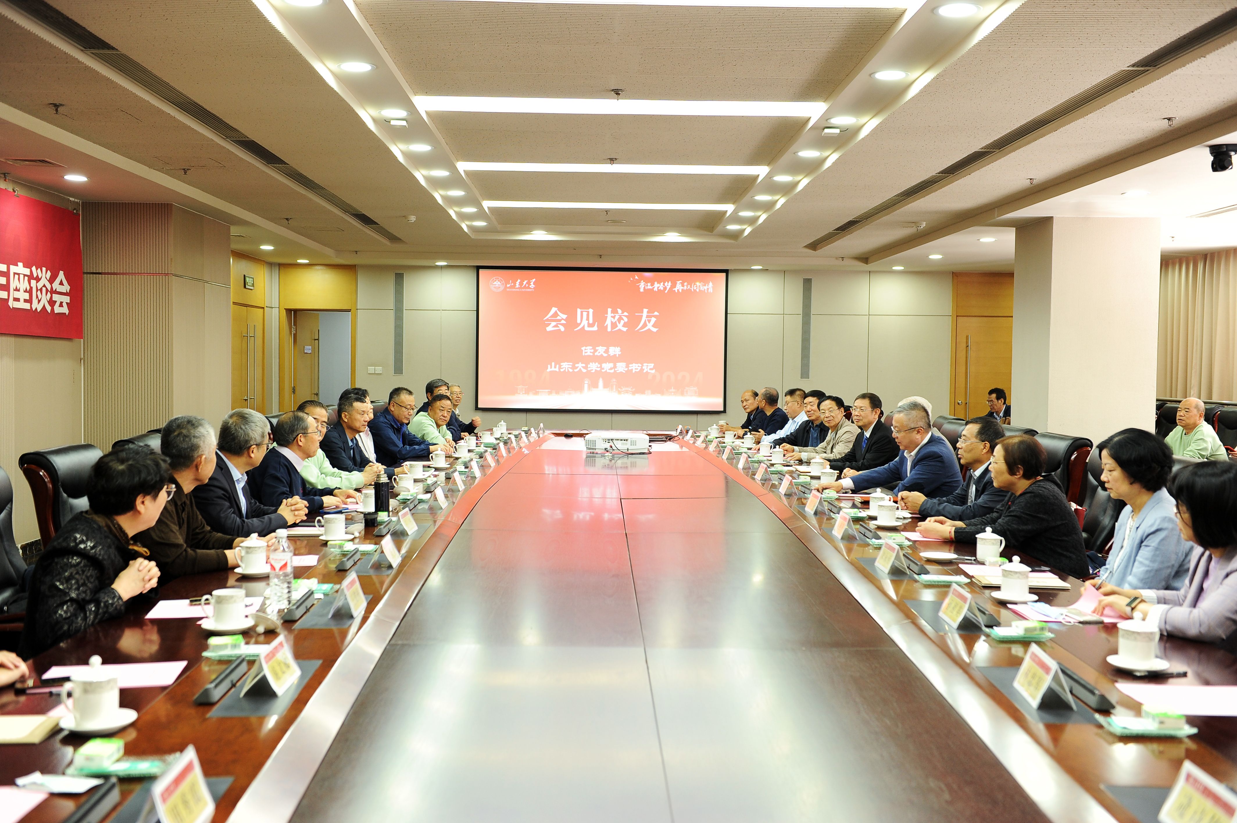 座谈会上,80级校友张季、胡为胜作为校友代表发言,细数并肩求索的校园时光,衷心感激山大文脉对人生成长的熏陶塑造以及传道恩师的指点栽培。