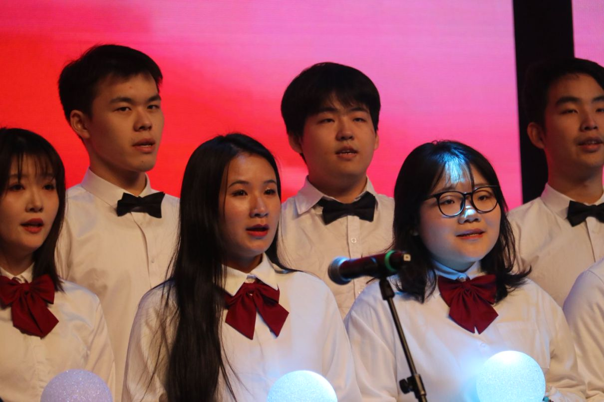 箫韵悠长,琴音袅袅,民乐合奏《十年人间》,让师生沉浸于传统乐器承载的厚重历史和时代光彩;粉墨登台,风华绝代,一曲京剧《卖水》、一舞《云伞惊鸿》,展现了新青年传颂着的国粹风骨;社会学系解玉喜、宗教学系王强伟、研究生辅导员吕汶鑫三位老师与研究生合唱《音有爱》,奏响导学心灵的和谐乐章,共同唱响属于学院的守护与陪伴;团委书记班梦姣、班主任毛林林与青年志愿者协会的志愿者们以青春活泼的手势舞,生动演绎哲社学子热心助人,服务社会的责任担当与奉献热忱。