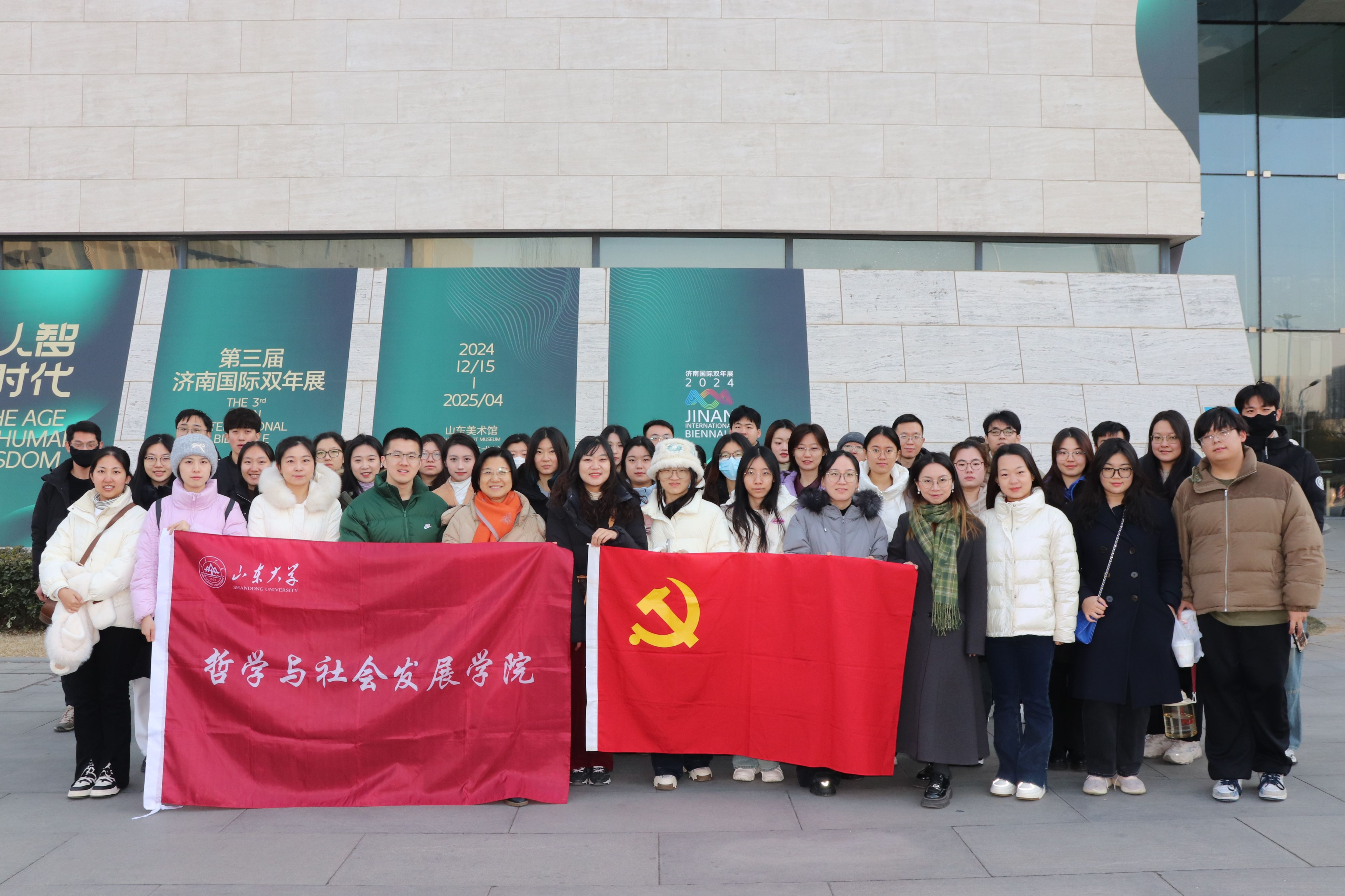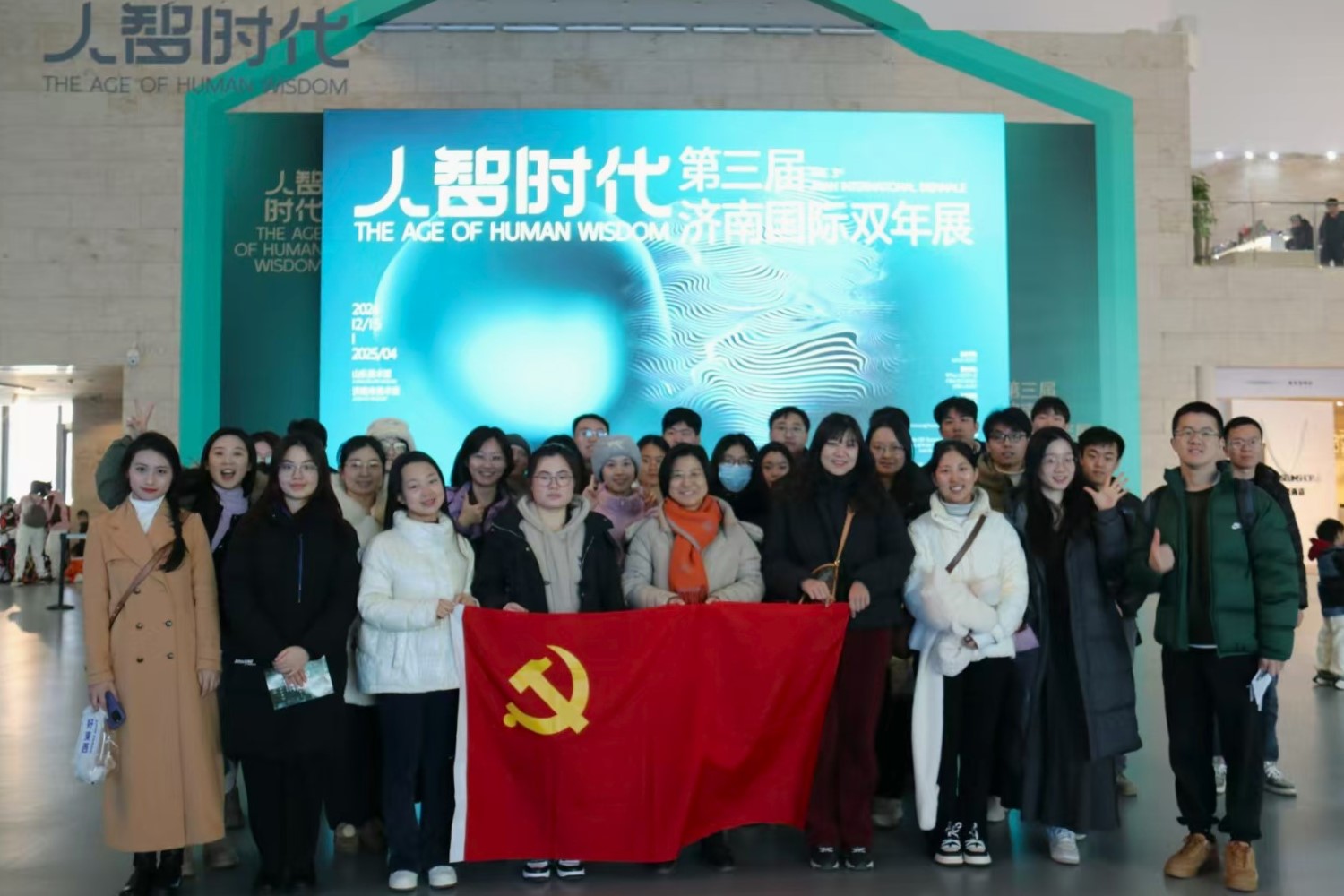 专业硕士第一党支部联合学院各学生党支部共同开展了联学联建主题党日活动,活动以“研·课程思政:五育并举强青年力量,文化自信筑时代新梦”为题,组织50余名本硕博党员前往山东美术馆参观第三届济南国际双年展,学院党委副书记马燕、辅导员班梦姣和吕汶鑫带队参与本次活动。
