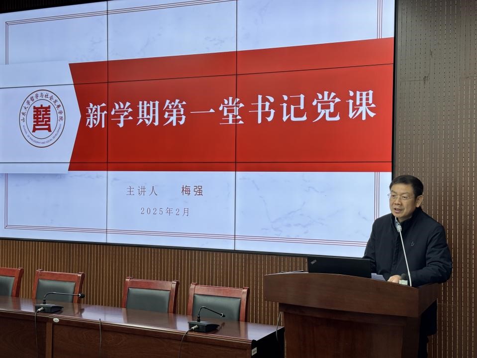 梅强从中共中央印发的《中国共产党支部工作条例(试行)》及相关党建要求中的“七个有力”谈起,从四个方面为党员们上了一堂生动且具有指导意义的党课。一是要加强理论学习,筑牢思想根基。要深入学习党的创新理论,将政治理论学习与组织生活、日常学习生活有机结合起来。在思想锤炼中坚定理想信念,把理论学习成果转化为推动工作、促进学习的强大动力,确保在前行道路上不偏航。二是要突出学科特色,赋能支部建设。要充分发挥学科优势,将党的先进理论与学科特色深度融合,积极打造样板支部,充分发挥战斗堡垒作用,强化政治功能和组织功能,筑牢党员的思想防线,凝聚起奋进新征程的强大力量。三是要坚持知行合一,彰显模范担当。各位党员同学要珍惜宝贵的学习时光,努力学习专业知识,不断提高自身本领。同时,要严守纪律规矩,做到慎独慎微,成为德才兼备、品学兼优的标杆,在学习和生活中彰显党员的模范担当。四是要弘扬山大精神,提升综合素养。要发扬勤于钻研的优良传统,在学习中不断审视自我、挑战自我、提升自我,克服学习和成长中的“内阻力”,坚持真理,实事求是,涵养浩然正气,筑牢山大基因,培养山大品格,擦亮山大底色。