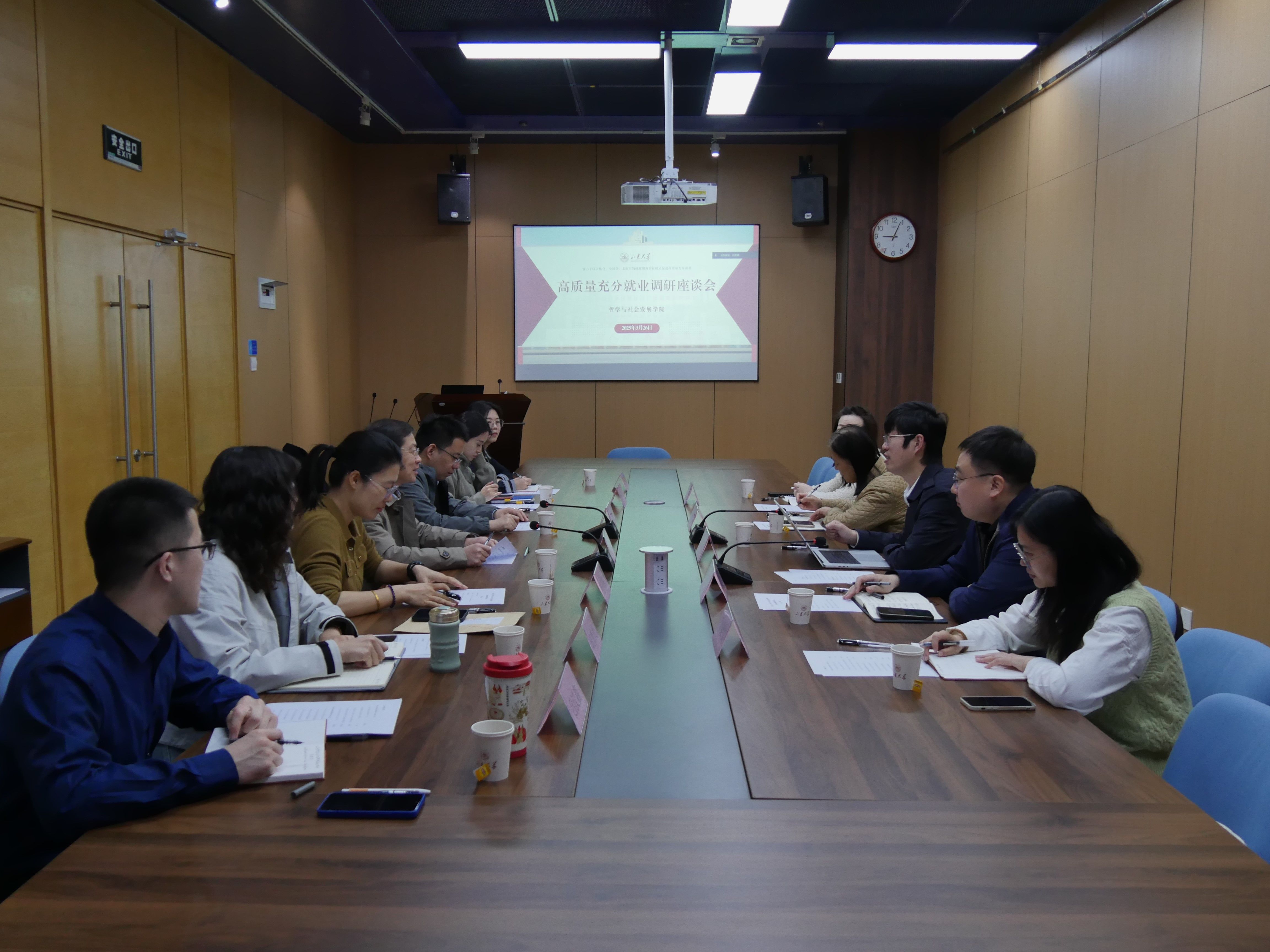 冯波表示,学院高度重视学生生涯发展规划与就业工作,将以此次调研为契机,推进“招生-培养-就业”联动改革,优化专业课程设置,强化重点群体帮扶。在交流座谈环节,辅导员班梦姣、吕汶鑫汇报学院2024届毕业生就业情况及2025年工作规划。与会人员围绕境内外升学率提升、重点行业就业拓展、就业质量跟踪反馈等问题展开深入研讨。