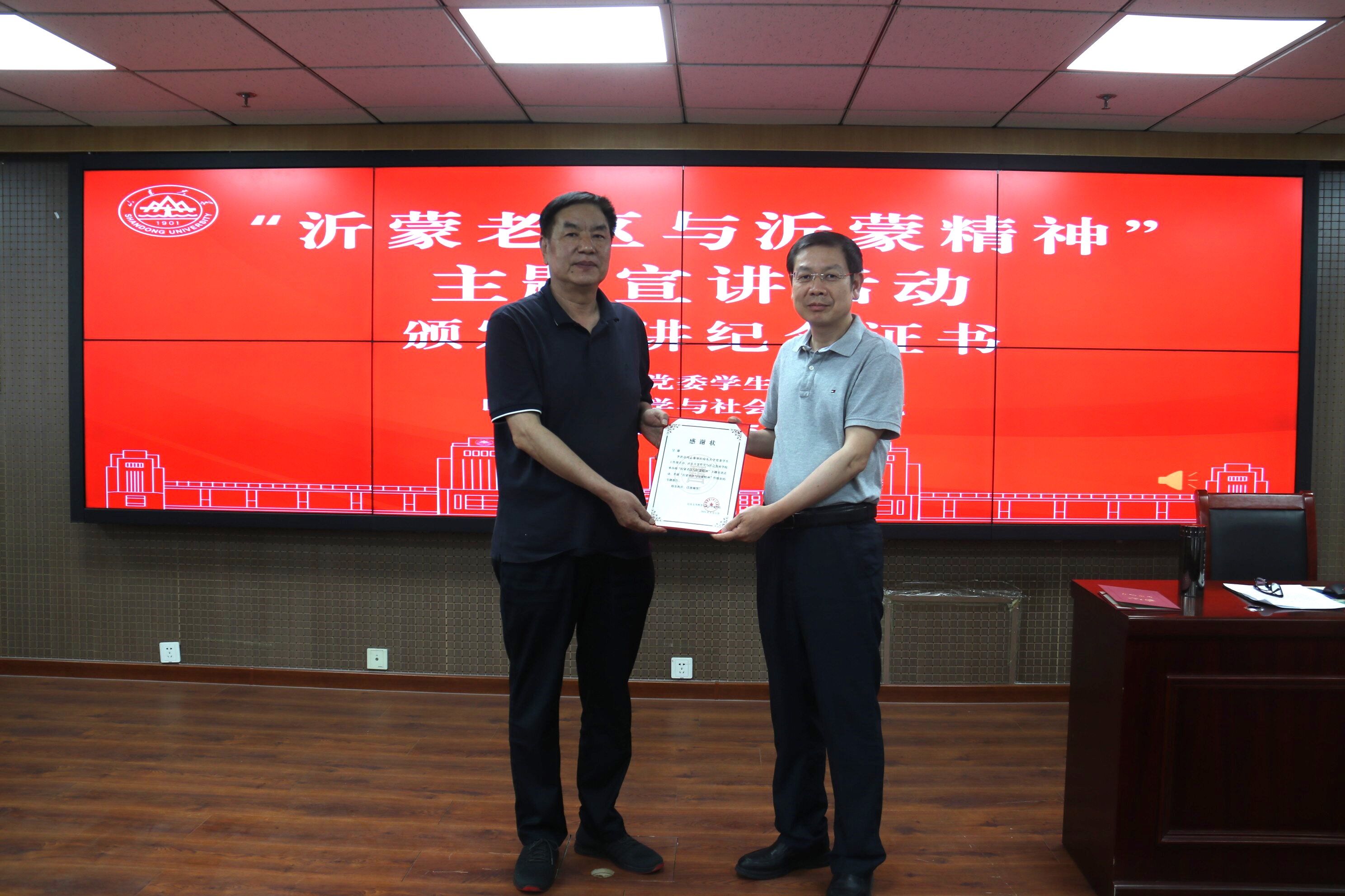 交流提问环节,现场师生积极踊跃,气氛活跃。李洪彦就“沂蒙精神对于大学生的启示和激励”“沂蒙精神的独特价值意蕴”“沂蒙精神的发扬传承”等问题一一解答。报告最后,梅强为李洪彦颁发宣讲纪念证书。
