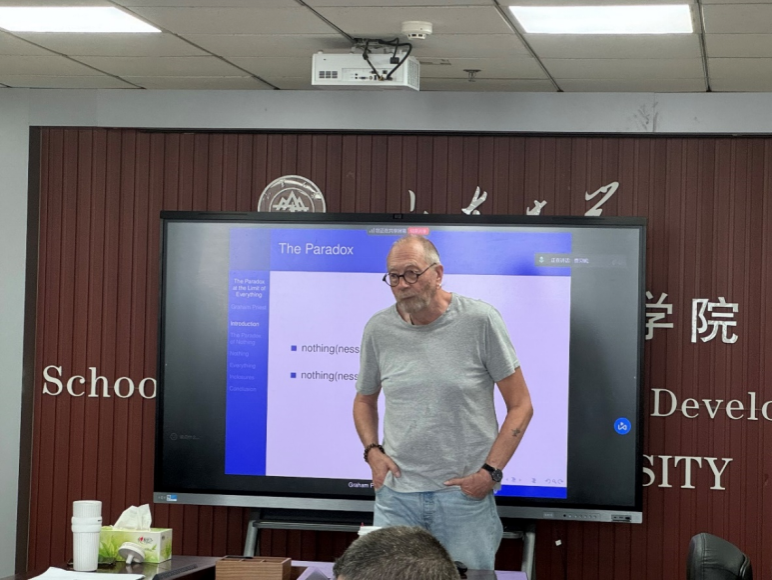兼职讲席教授格雷厄姆·普里斯特(Graham Priest)教授在知新楼A1618作题为《“一切”极限处的悖论》(The Paradox at the Limit of Everything)的学术讲座。讲座由哲学系王文方教授主持。