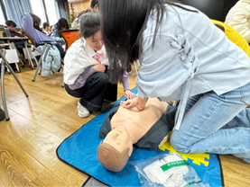 随后,山大二院四叶草志愿服务团队陈长静开展专业授课。陈长静聚焦心肺复苏、海姆立克急救法等核心技能,结合癫痫发作、老年骨质疏松患者急救等场景,通过视频演示、动作拆解等方式讲解操作原理。