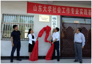 社会工作专业实践基地”揭牌。县民政局局长胡中全、社会工作系主任高鉴国教授,县福利中心工作人员和社会工作专业硕士研究生一起参加了挂牌仪式。