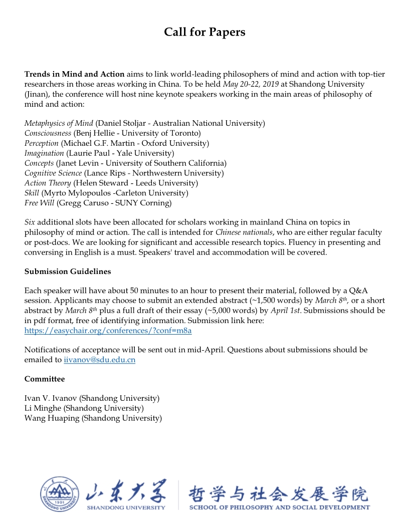 开车漫画 将于2019年5月20-22日举行”心灵与行动哲学动向“国际会议,在此征集六个会议报告人。此次会议旨在汇集心灵哲学与行动哲学主要领域的海外及国内一流学者的研究成果。除了国内的六个报告,会议还将有9名世界领衔学者的主题报告。诚邀大家申请参会。 会议详情://www.easychair.org/cfp/M8A 线上提交://easychair.org/conferences/?conf=m8a