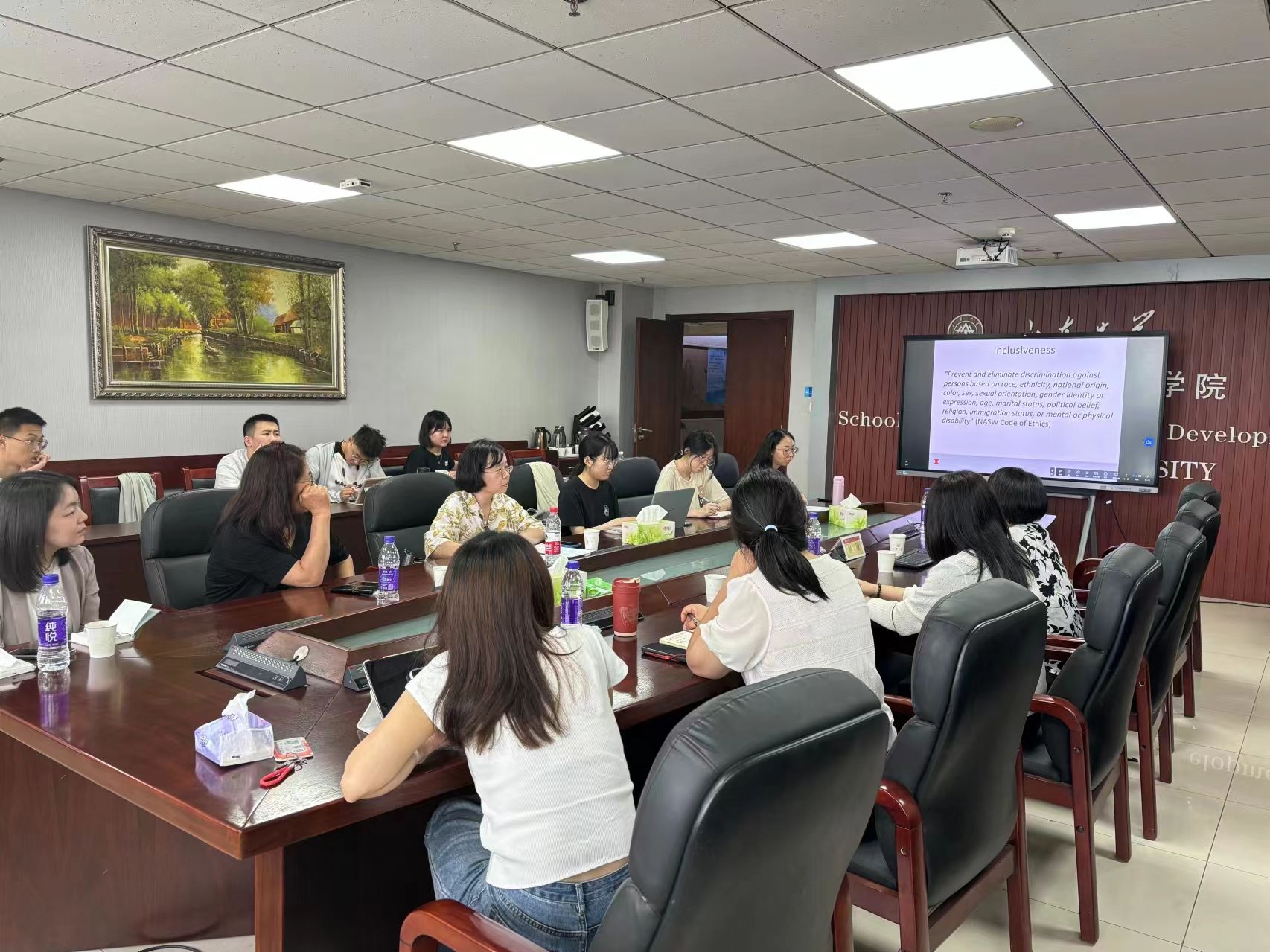 社会工作国家级一流专业建设的情况,大家通过对中美两国在该领域的教育模式进行比较,就如何提高社会工作人才培养质量以适应数字时代的新需求展开了热烈讨论和交流。