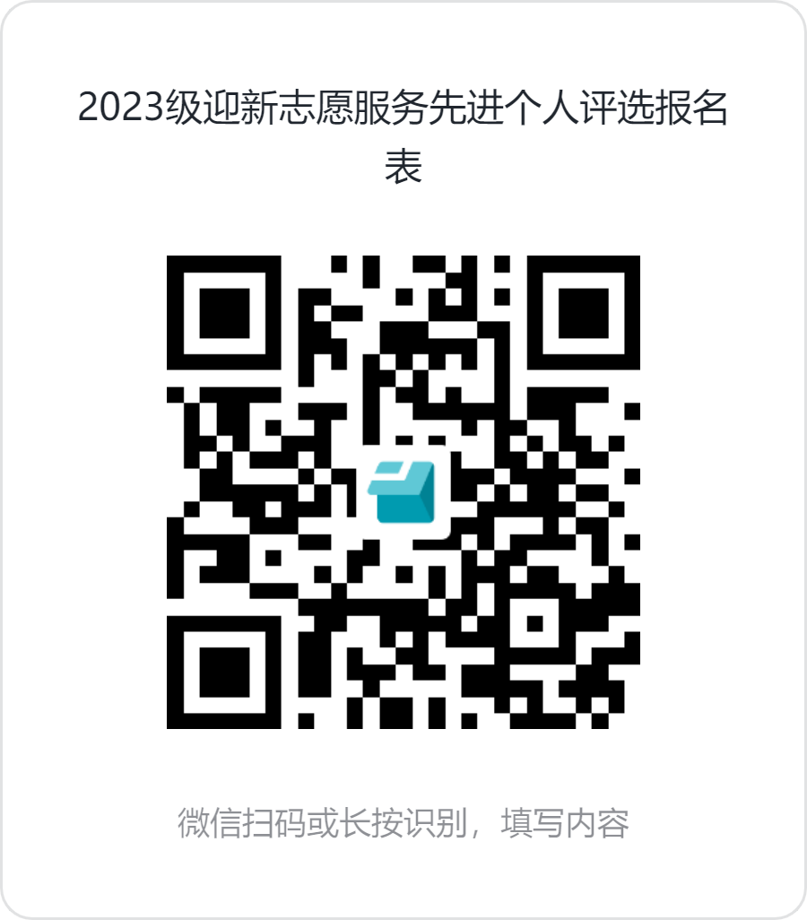 参评人员请于9月22日18:00点前填写《2023级迎新志愿服务先进个人评选报名表》(报名表二维码附于下方,或见哲社迎新志愿者QQ群:920095918及学院各年级官方群)。