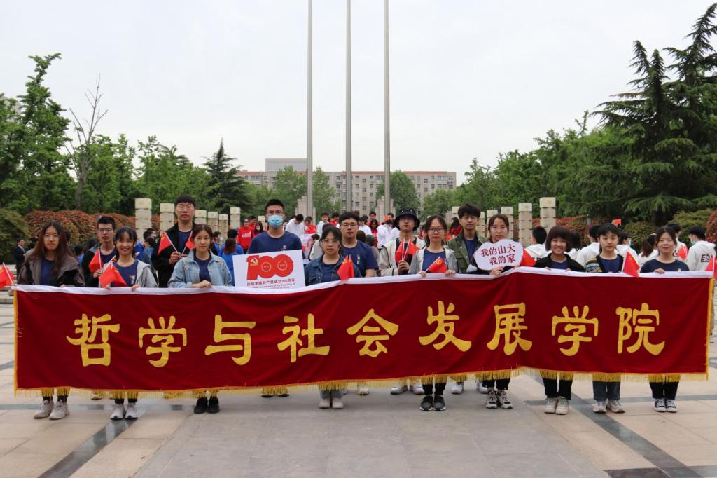 管理学院2019级硕士研究生戚真的带领下,团员们郑重地举起右拳,目光灼灼,语调铿锵,在国旗下重温入团誓词,表达了山大学子勤奋学习,不忘初心,为共产主义事业不断奋斗的坚定决心。