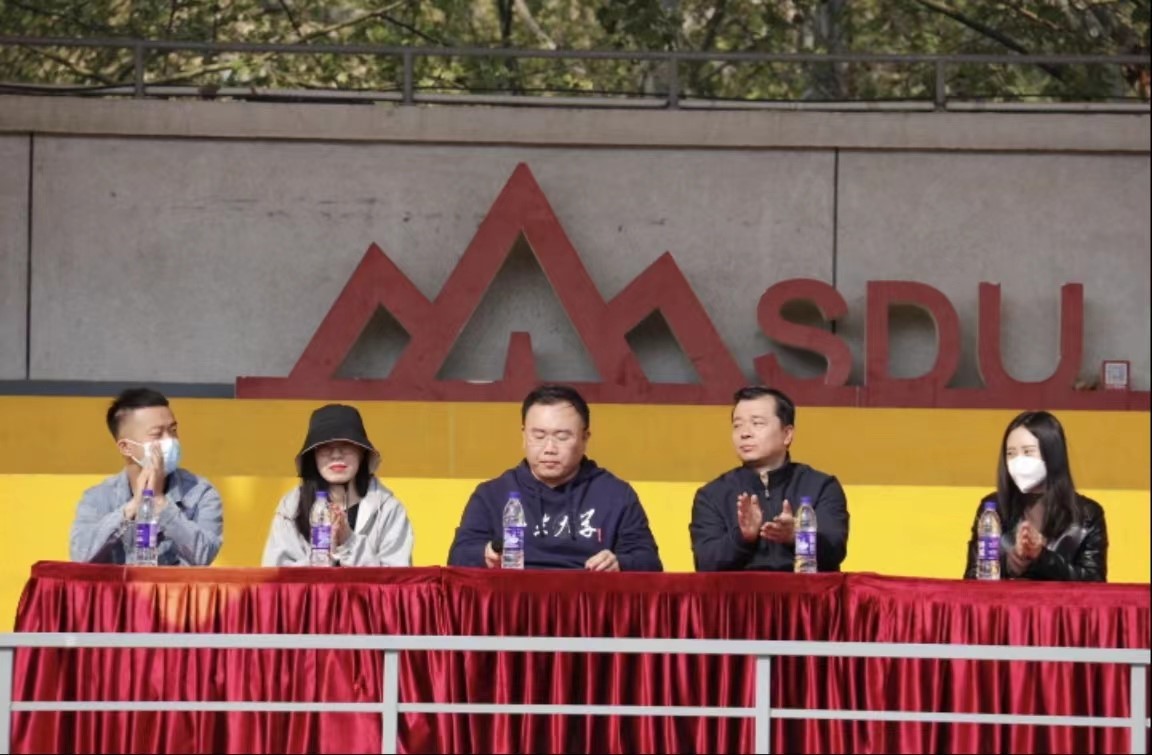 工会主席齐晓东、 辅导员冯守刚、封莹、史艺姝、宋易儒出席运动会开幕式。