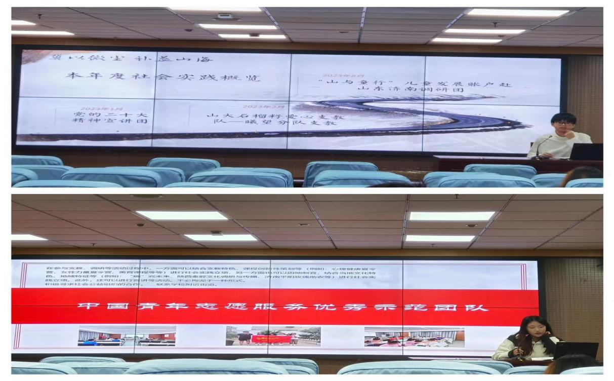 社会实践先进个人2021级本科生佟姜缘就社会实践选题、如何做好社会实践两方面进行详细讲解,着重强调工作留痕的重要性;社会实践先进个人2021级本科生解颖从支教、对接实践场所等方面分享社会实践立项的经验,并结合自身经历鼓励同学们积极主动参加社会实践。社会实践先进个人们的精彩分享激励着同学们在日后社会实践中不断进步,取得优异成绩。