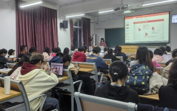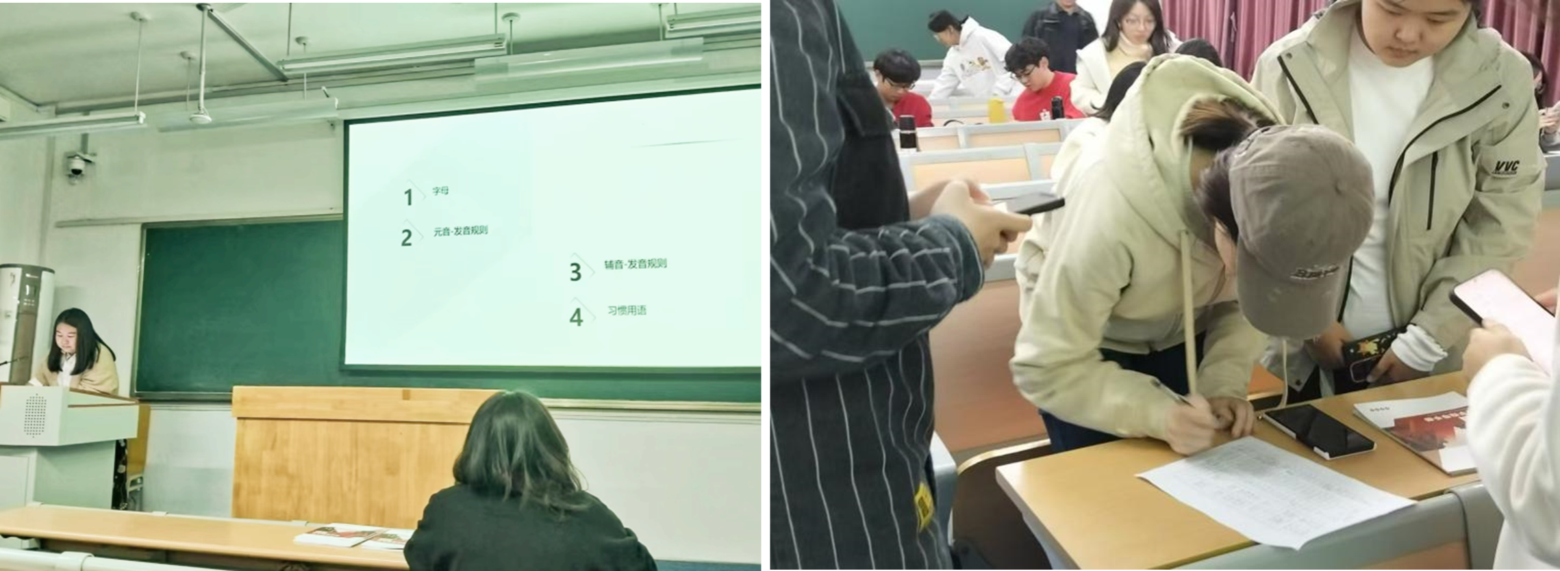 随后的德语公开课包含德语入门教学和交流答疑两部分。王老师向同学们讲解了字母、发音规则和简单日常用语等德语入门知识。在自由交流环节中,为同学们解答了许多德语学习中的疑惑。