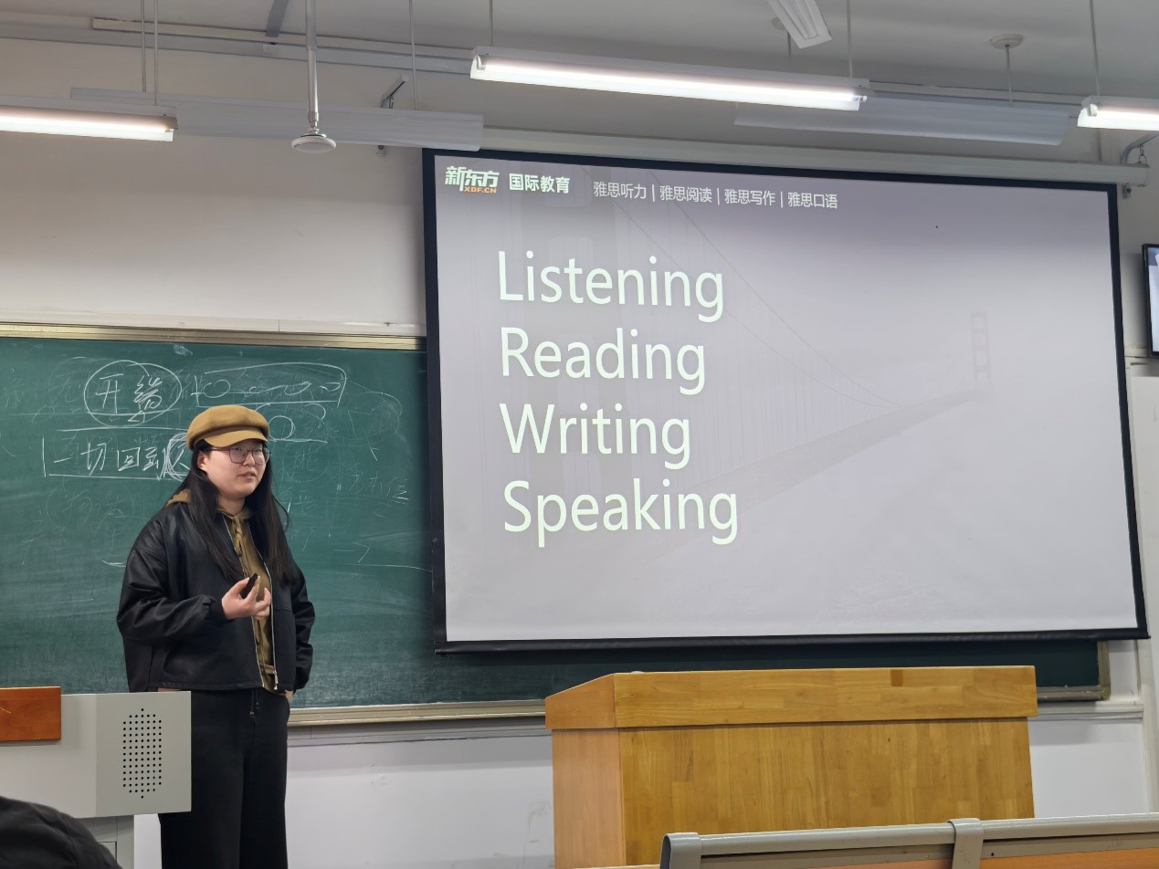 课程内容聚焦Task&Task2双题型,详细解读了各类题型的评分标准以及获取高分的关键要素。同时,通过真题案例演示,系统梳理了学术语言的升级技巧,帮助同学们更好地掌握英语学术写作的精髓。此外,活动现场还为同学们精心准备并发放了实用的学习资料,以便于大家课后复习巩固。