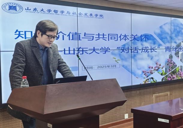在知新楼A1521报告厅举办“‘对话·成长’青年会客厅——高层次人才与青年面对面”主题活动。本次活动特邀哲学系尚文华教授主讲,团委书记班梦姣主持,哲学系全体同学参加,共同探讨哲学研究的当代价值与青年学者的使命担当。