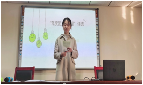 在班级年度团支部之星评选环节,秦深、郭栩彤、杨雨阳依次进行评选答辩,她们简要介绍了开学以来的学习生活经历与体验。