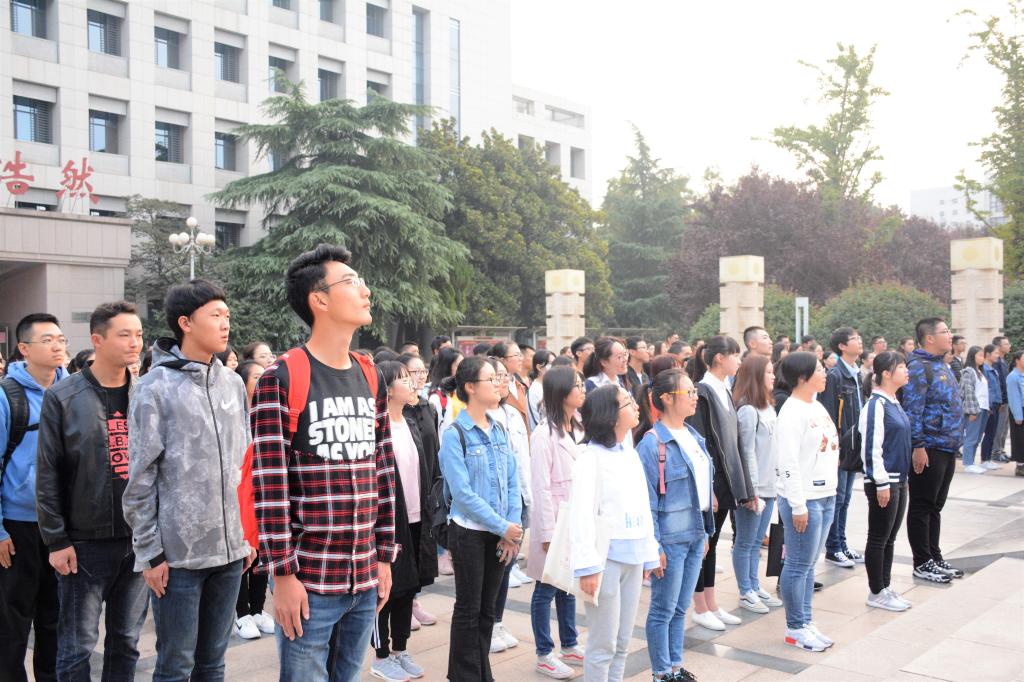 在大成广场升旗台前举行了2018级本科生新学期升旗仪式。辅导员马雁思与开车漫画