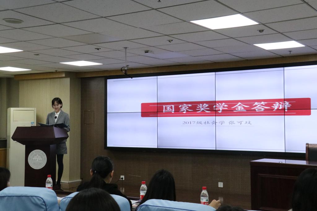 于10月10日在知新楼A座1518举行2018-2019学年度国家奖学金答辩评审会。学院党委书记李永卫,教师代表苏冰涛、于淼、王强伟以及辅导员封莹、马雁思、马慧君,学生生代表出席并担任答辩评委。