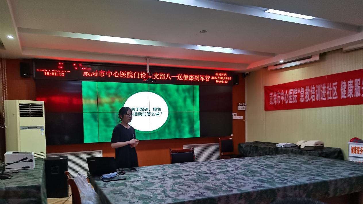 “护园”赴山东多地关于双碳背景下城乡居民低碳意识调研宣讲团的团队成员董雨姝在山东省威海市文登区人民武装部开展宣讲活动。活动有数十名武装部战士参与,现场气氛良好、反响热烈。