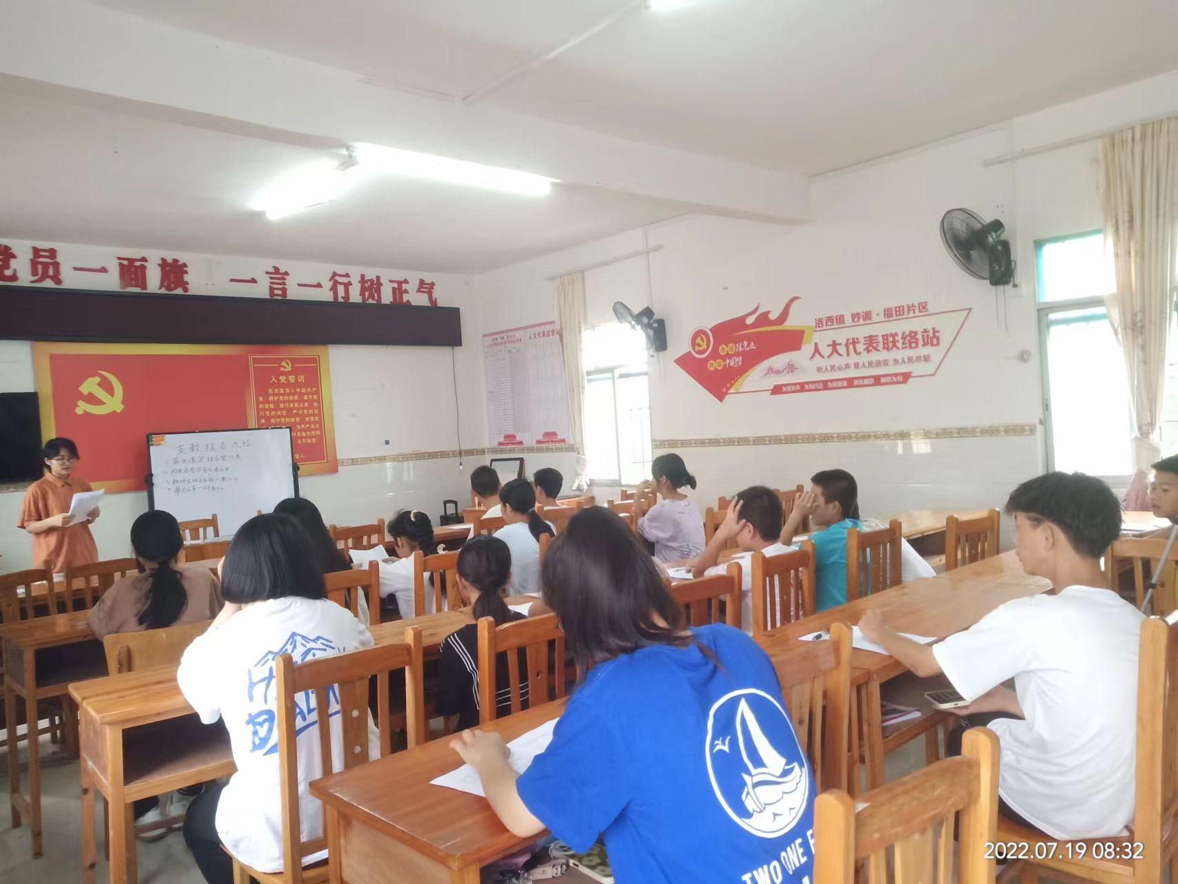 “哲心社爱”德治法治进社区宣讲队赴广西壮族自治区宜州区开展活动。本次活动与支教活动相结合,以课堂讲课形式开展,共服务23名学生和2名家长。宣讲期间各方积极参与,事后得到了当地村委会的支持和认可。