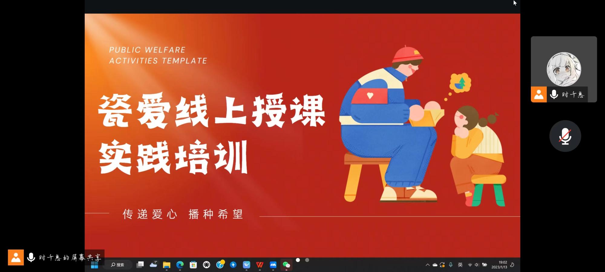 “瓷爱”一对一陪伴支持项目授课组在腾讯会议上召开暑期社会实践活动筹备会。队长时千惠主持,来自哲学、社会学专业的7名团队成员参与。