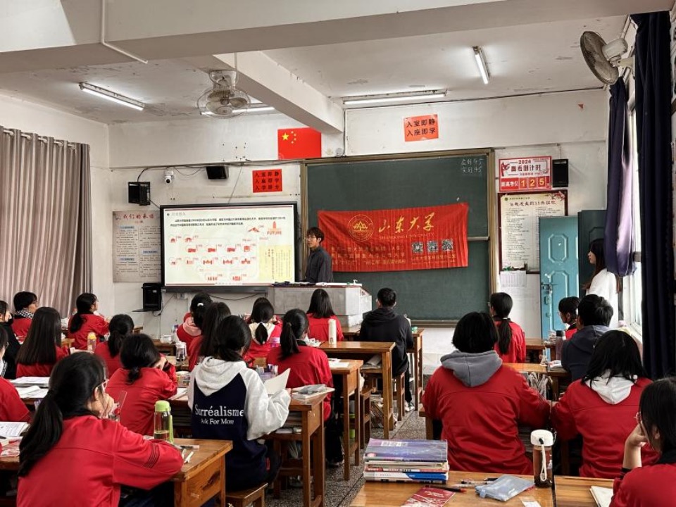招生政策信息、人才培养体系和学科建设特色等。云南师范大学附属中学杨静黎老师到会指导,高二年级学生参与宣讲会。近一个月来,山大彩云之队在云南省三个州市组织开展了多场宣讲活动,以“汇聚英才,为国育贤”为主题先后在云南师范大学附属中学、昆明市第一中学、云南民族大学附属中学等优质生源中学展示了“百廿”山大风采,云南师范大学附属中学作为山大彩云之队在云南省宣讲活动的最后一站,本次宣讲活动将为山大学子在云南省的宣讲足迹画上圆满的记号。