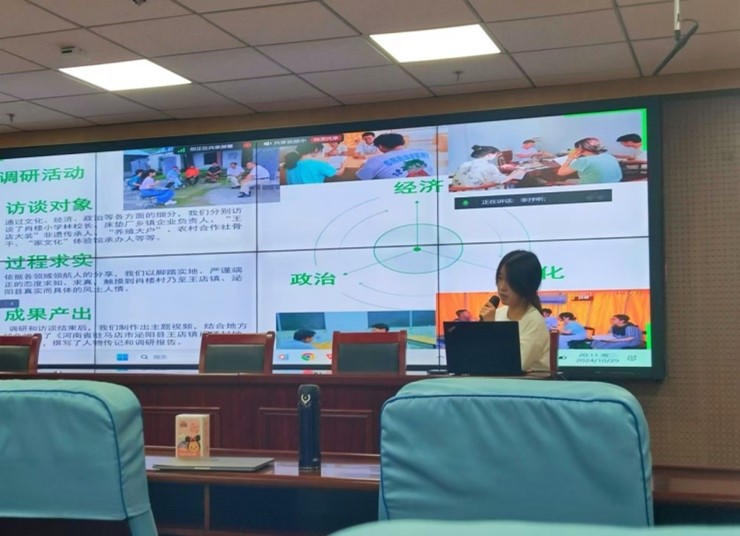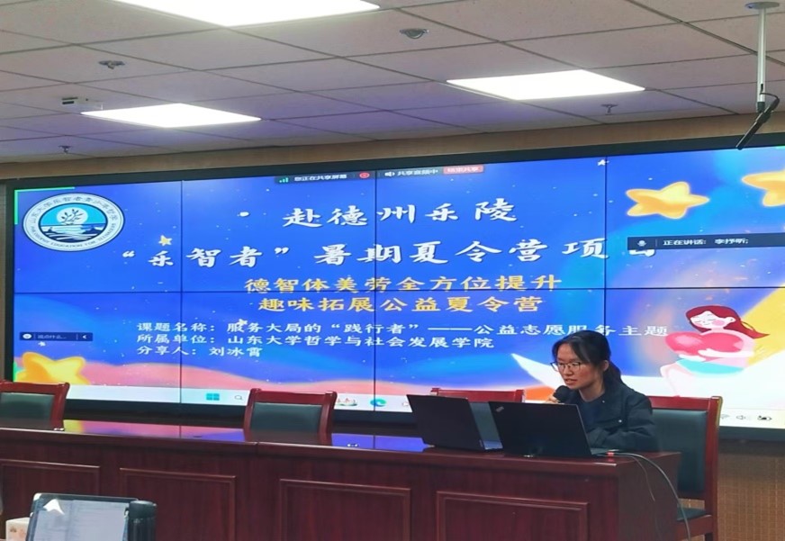 乐智者赴德州乐陵夏令营团队的刘冰霄进行分享。她通过展示团队项目的前期立项过程和最终成果,阐述了哲学教育在基层支教活动中的重要性和可为性,同时向同学们讲解了社会实践项目在立项结项过程中可能遇到的问题和解决方案。其中关于夏令营筹备和实施经验的详细分享,使在场新生受益匪浅。