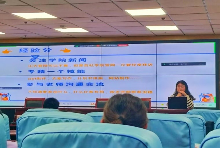 赵悉伶同学则是从自己丰富的社会实践经历出发,就项目时间划分对于竞选压力和难度上限的影响、自主或专项主题活动立项的要求和区别、团队组建和明确分工三个方面进行讲解,强调过程记录和多渠道宣传的重要性,并且总结了部分投稿渠道供新生参考。