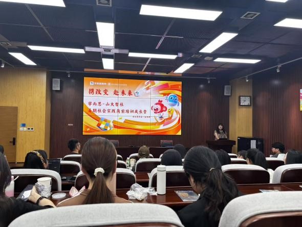 在知新楼A115教室举办了以“聚知识光芒,燃实践之光”为主题的暑期社会实践行前培训活动。
